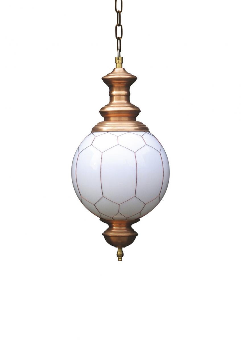 Závěsné svítidlo s opletenou koulí a s měděnými doplňky